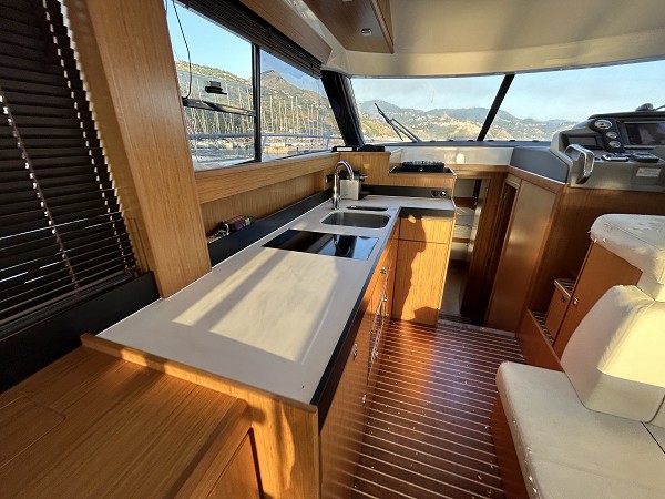 Introducing the exquisite 2015 Bavaria Virtess 420 Fly, a stunning motor yacht that combines elegance with performance. With an overall length of 13.6 meters, this vessel boasts a sleek Deep Vee hull crafted from premium materials, ensuring a smooth and stable ride. Powered by twin Volvo Penta IPS 600 engines, each delivering an impressive 435 hp, it achieves a cruising speed of 25 knots and a maximum hull speed of 32 knots, making it perfect for exhilarating journeys on the water. The yacht accommodates three beautifully appointed cabins and two heads, providing ample space for relaxation and comfort. An electric windlass enhances convenience while mooring, and the joystick control system ensures effortless maneuverability. With a range of 225 kilometers, the Virtess 420 Fly is designed for extended adventures. Experience the perfect blend of luxury and performance aboard the Shangrila, where every detail is crafted for your enjoyment.
